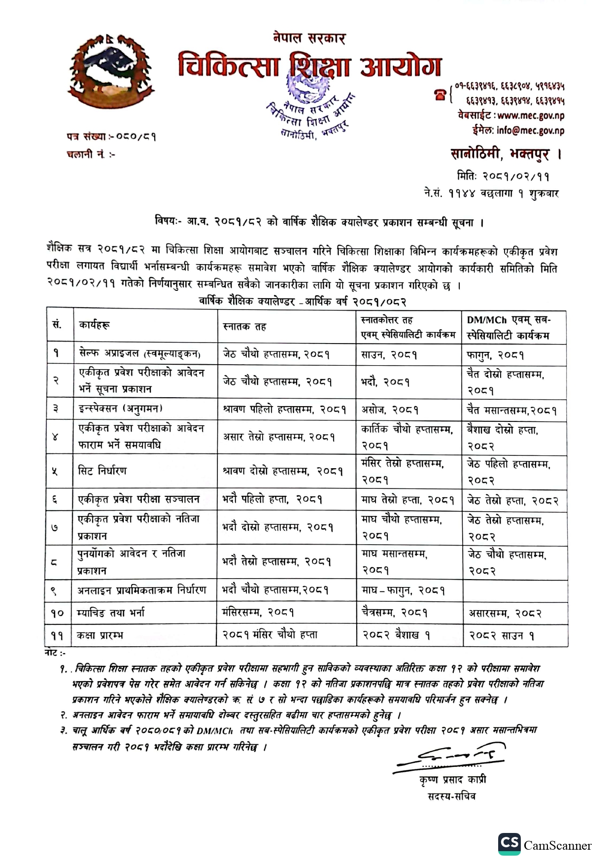 आ.व. २०८१/८२ को वार्षिक शैक्षिक क्यालेन्डर प्रकाशन सम्बन्धी सूचना
