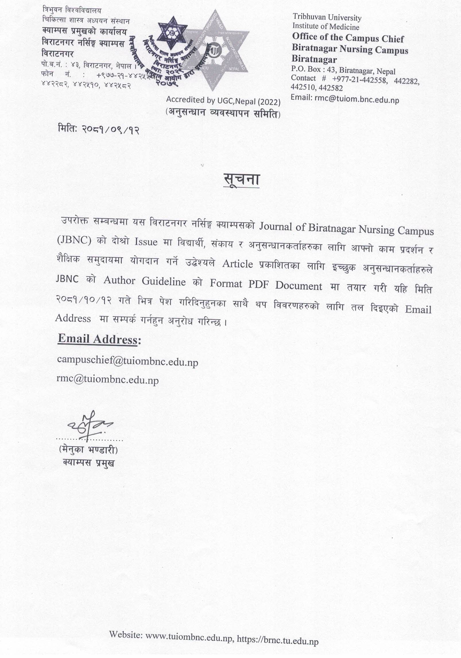 बि.एन.एस. तथा बि.एस्सी नर्सिङ् तेस्रो वर्षाम भर्ना सम्बन्धी सूचना ।